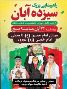 از همه شما عزیزان دعوت میشود در راهپیمایی باشکوه ۱۳ آبان شرکت فرمایید 💪