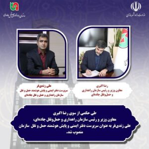 🔹طی حکمی از سوی رضا اکبری معاون وزیر و رئیس سازمان راهداری و حملونقل جادهای، «علی زندیفر» به عنوان سرپرست دفتر ایمنی و پایش هوشمند حمل و نقل سازمان (ایمنی و ترافیک سابق) منصوب شد.